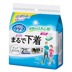 (▼3980円以上送料無料(但し沖縄県・.離島は送料負担がございます。)弊社では、当日発送は対応しておりません。) 花王 リリーフ 紙パンツ2回分 超薄型まるで下着 L-LL お試しパック2枚入はお試しパック2枚入。抗菌消臭技術によって、臭いの発生から強力ブロック。安心の2回分吸収。ピュアホワイト 【4901301385062】