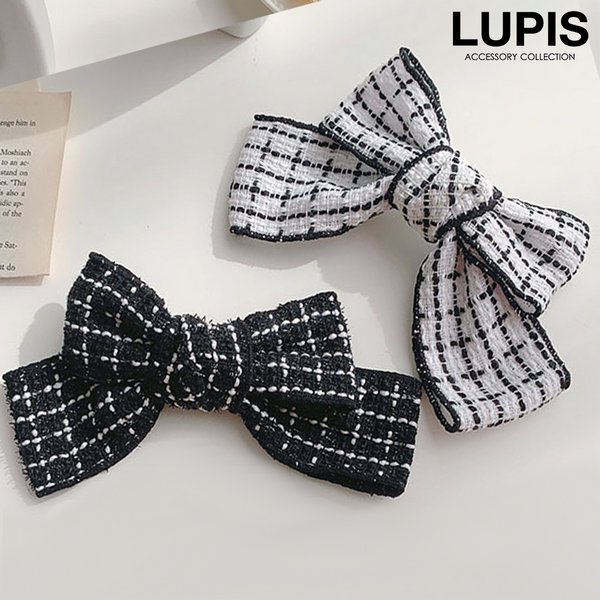 バレッタ リボン ツイード ヘアアクセサリー ボリューム 大きめ 大人ガーリー レトロ 韓国っぽ かわいい LUPIS ルピス