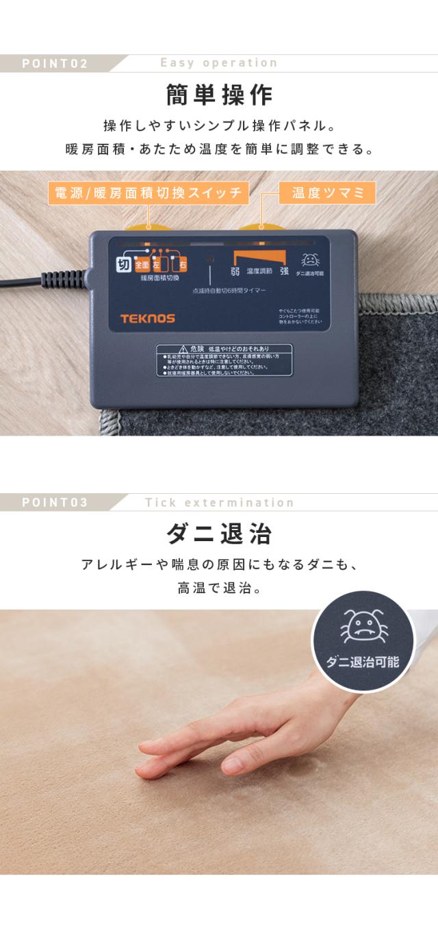 ホットカーペット 3畳 本体 ラグ 2点セット 長方形 電気カーペット 3畳用 ホットマット 電気マット 速暖 暖房 面積切替 温度調節 切忘れタイマー 簡単 操作 足元暖房 床暖房 暖房器具 カーペット ラグマット テクノス TEKNOS TCW-3002MF *