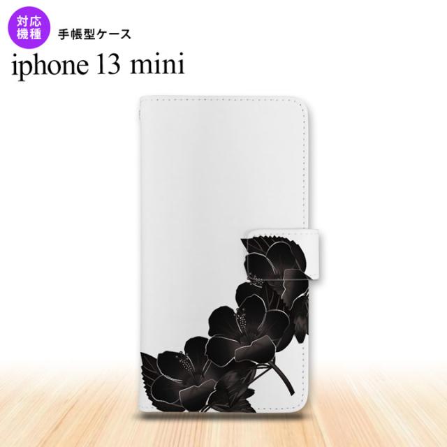 iPhone13mini iPhone13 mini 手帳型スマホケース カバー ハイビスカス 黒 iPhone13 mini 5.4インチ nk-004s-i13m-dr084