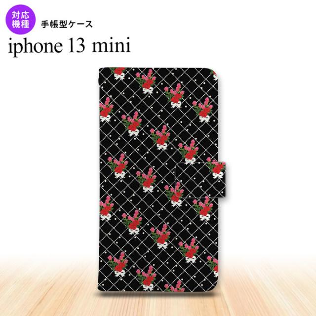 iPhone13mini iPhone13 mini 手帳型スマホケース カバー 花柄 バラ 編み 黒 iPhone13 mini 5.4インチ nk-004s-i13m-dr267