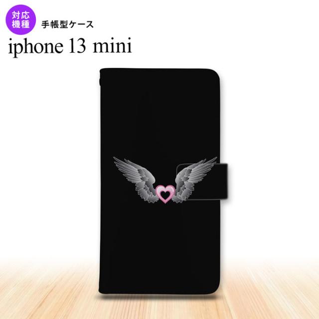 iPhone13mini iPhone13 mini 手帳型スマホケース カバー 黒翼 ハート 黒 ピンク iPhone13 mini 5.4インチ nk-004s-i13m-dr467