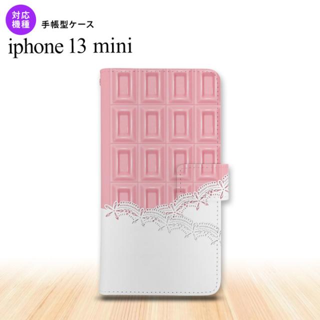 iPhone13mini iPhone13 mini 手帳型スマホケース カバー チョコ ストロベリー レース ピンク