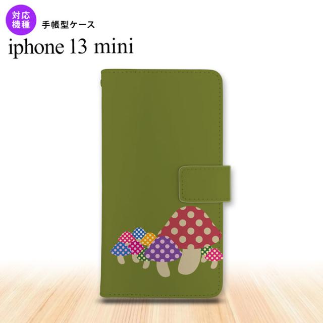 iPhone13mini iPhone13 mini 手帳型スマホケース カバー きのこ 緑 iPhone13 mini 5.4インチ nk-004s-i13m-dr743