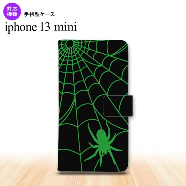 iPhone13mini iPhone13 mini 手帳型スマホケース カバー 蜘蛛 巣 緑 iPhone13 mini 5.4インチ nk-004s-i13m-dr942