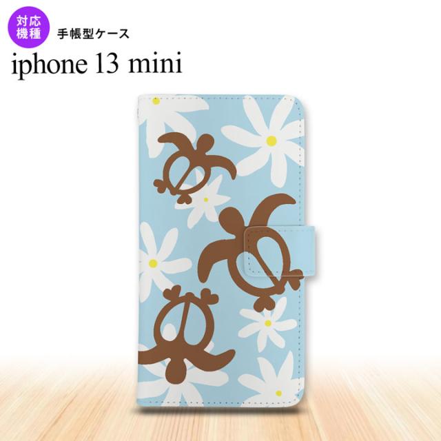 iPhone13mini iPhone13 mini 手帳型スマホケース カバー ホヌ ティアレ 水色 iPhone13 mini 5.4インチ nk-004s-i13m-dr1082