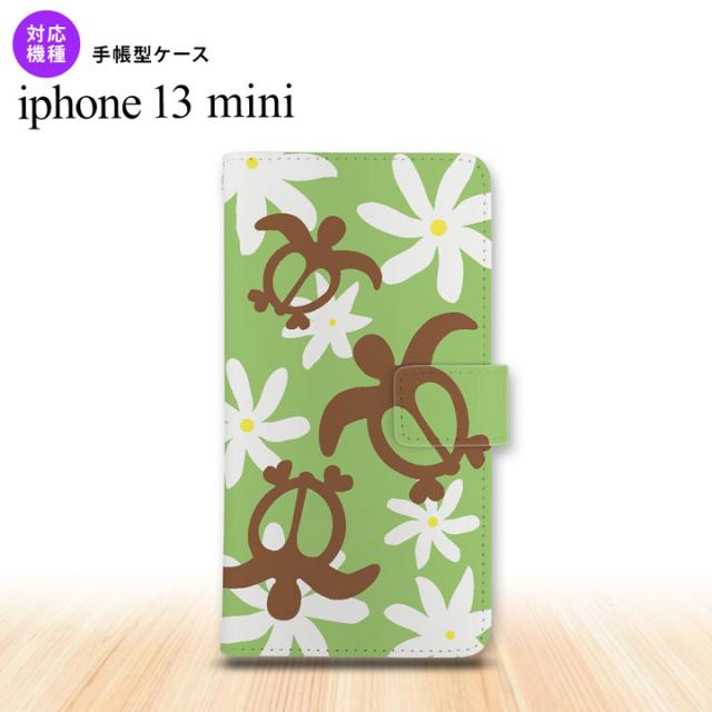 iPhone13mini iPhone13 mini 手帳型スマホケース カバー ホヌ ティアレ 緑 iPhone13 mini 5.4インチ nk-004s-i13m-dr1083