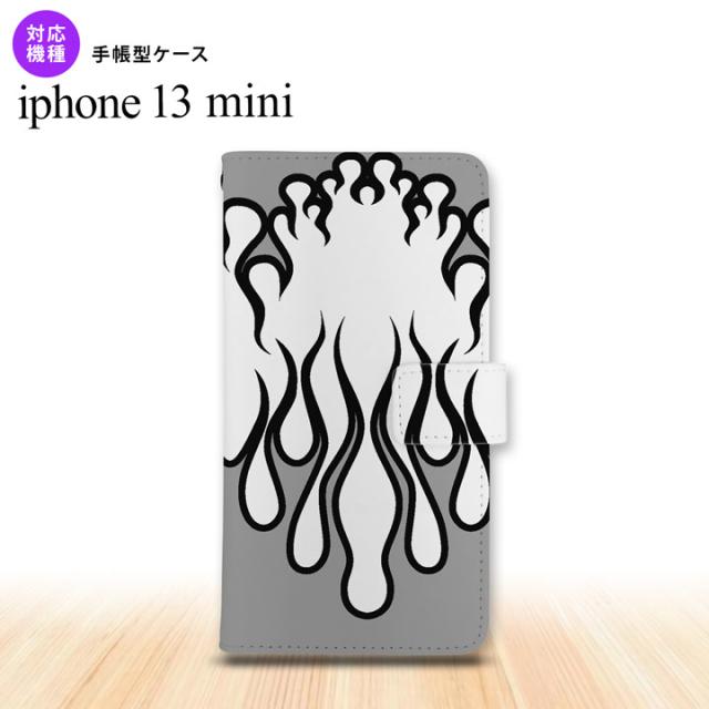 iPhone13mini iPhone13 mini 手帳型スマホケース カバー ファイヤー 炎 白 黒 iPhone13 mini 5.4インチ nk-004s-i13m-dr1307