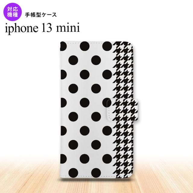 iPhone13mini iPhone13 mini 手帳型スマホケース カバー ドット 千鳥 黒 iPhone13 mini 5.4インチ nk-004s-i13m-dr1515