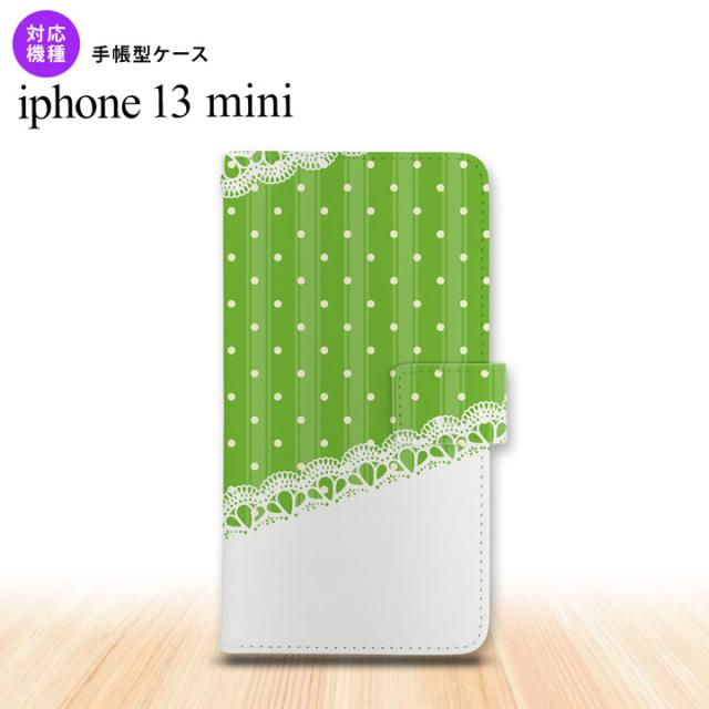 iPhone13mini iPhone13 mini 手帳型スマホケース カバー ドット レース 緑 iPhone13 mini 5.4インチ nk-004s-i13m-dr1615