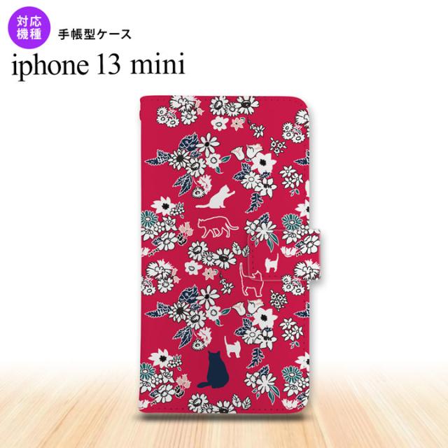 iPhone13mini iPhone13 mini 手帳型スマホケース カバー 猫 花 赤 iPhone13 mini 5.4インチ nk-004s-i13m-dr1723