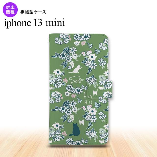iPhone13mini iPhone13 mini 手帳型スマホケース カバー 猫 花 緑 iPhone13 mini 5.4インチ nk-004s-i13m-dr1724