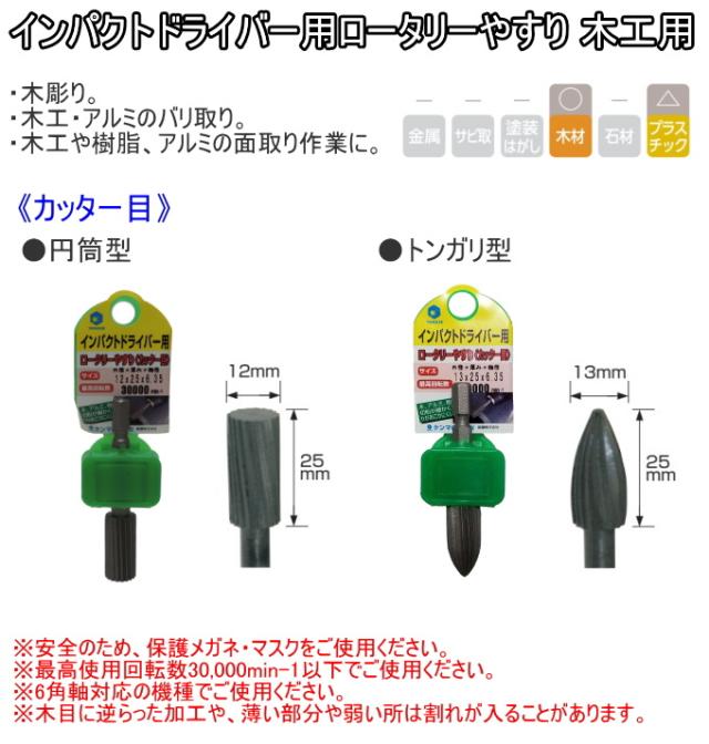 インパクト用 ロータリーやすり 木工用 1個入 送料無料 インパクト用 電動工具 木材 木工用 木彫り 樹脂 アルミ バリ取り