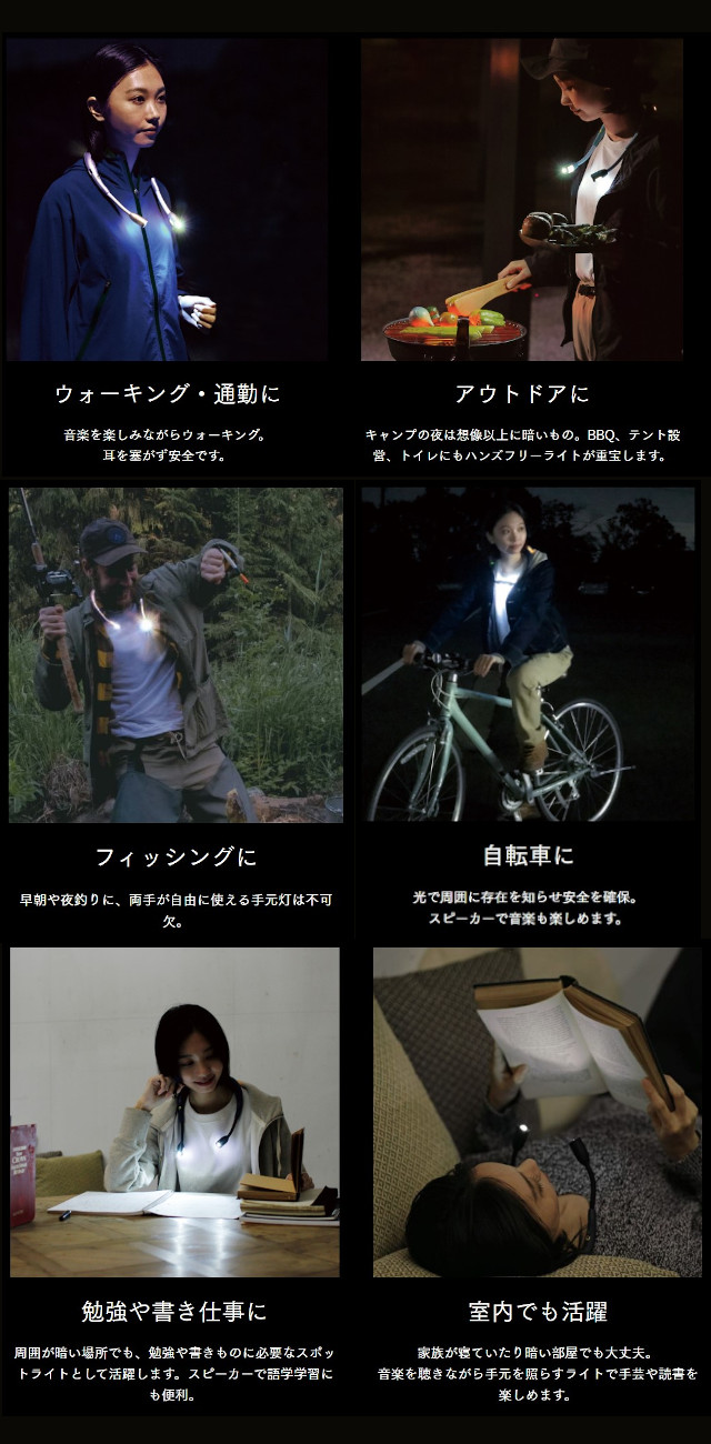 ライトと音を身にまとう、ハンズフリーのウォーキングライト |