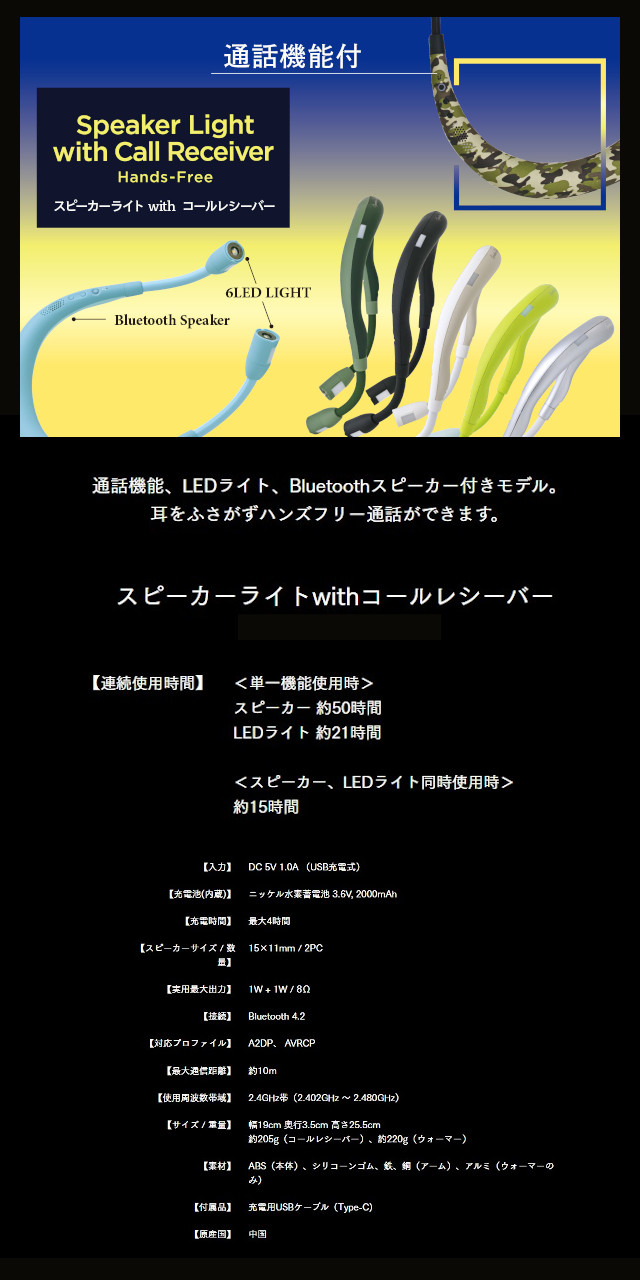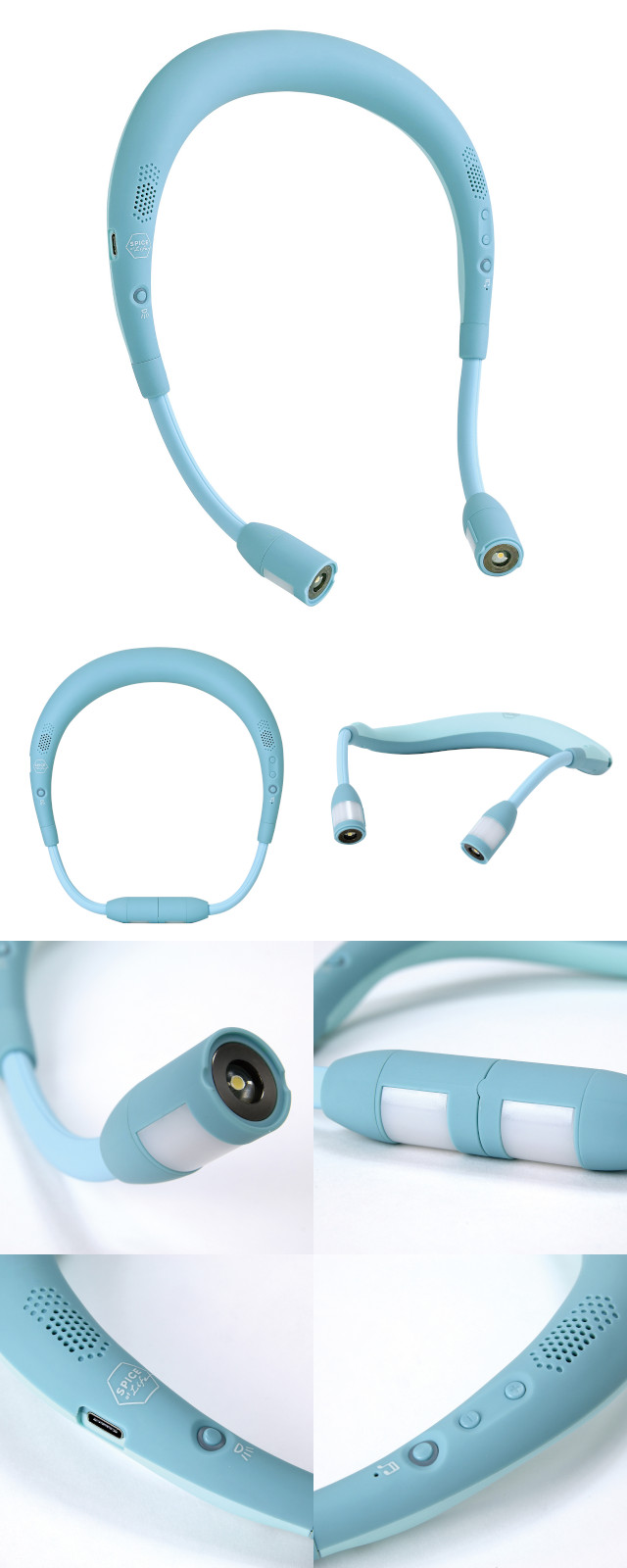 ■首から掛けるタイプの簡単装着で両手が自由になり、さらに音楽を楽しめ、電話通話もできるBluetoothスピーカー機能を搭載。