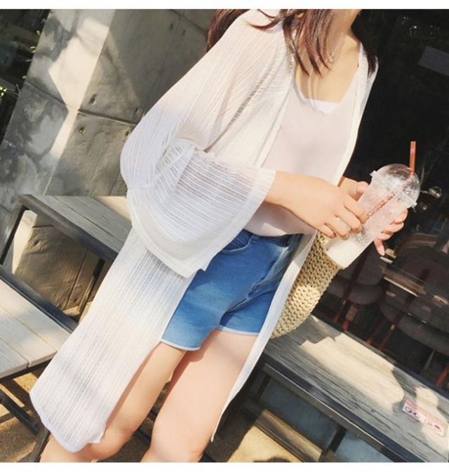 カーディガン レディース 長袖 ロングカーデ 無地 ストライプ柄 薄手 透け感 大きいサイズ トップス ゆったり 冷房対策 春 夏 秋