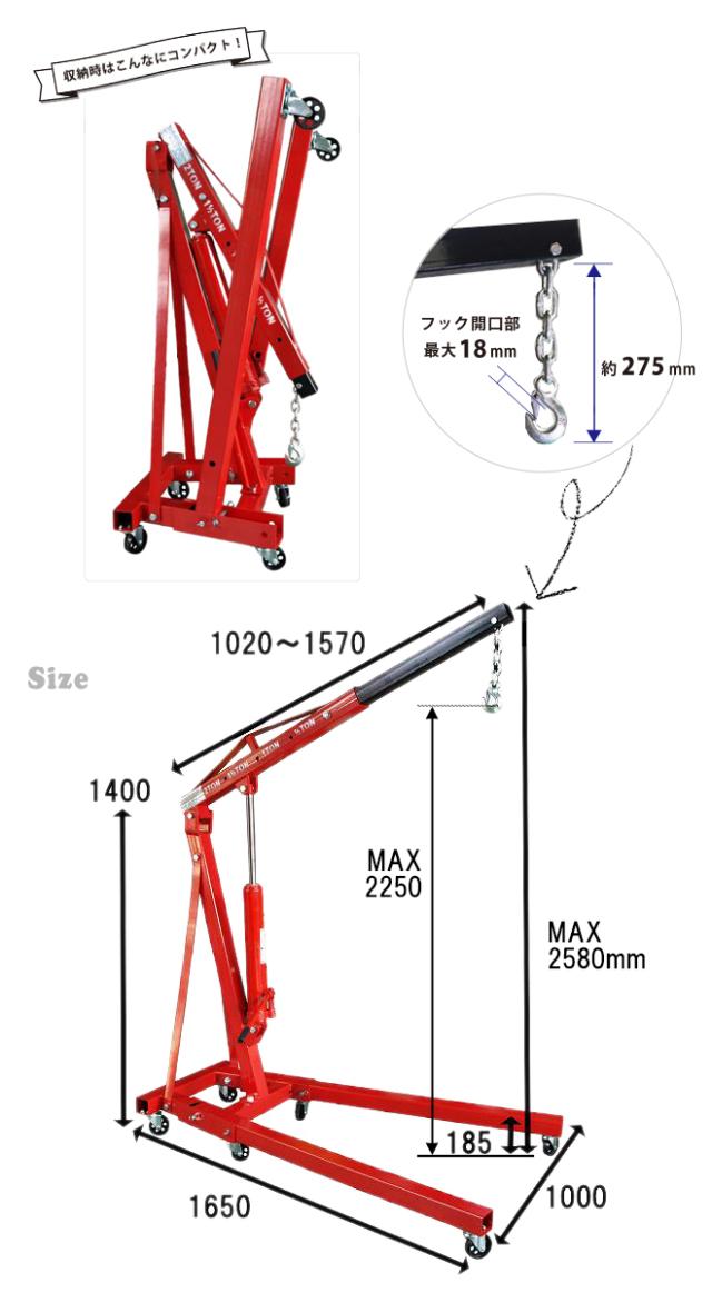 エンジンクレーン 2トン マルチクレーン コンパクトクレーン 簡易クレーン 6ヶ月保証 KIKAIYA