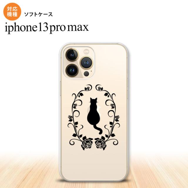 iPhone13ProMax iPhone13 Pro Max ケース ソフトケース 猫とバラ A 黒 iPhone13 プロ マックス 6.7インチ おしゃれ かわいい メンズ レディース キッズ デザインたくさん nk-i13pm-tp1142