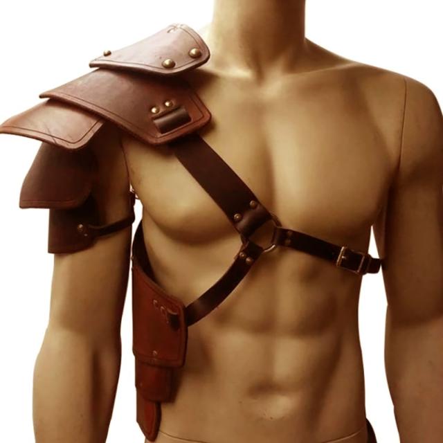 コスプレ 片面 肩鎧 戦士 鎧 ーVer2ー ブラウン 衣装 メンズ レディース ファッション 甲冑風 肩当て 中世 ヴィンテージ風 傭兵 騎士 ナイト 服 ハロウイン ハロウィーン パーティー ゴシック 茶色 舞台 結婚式 かっこいい PUレザー 革の鎧 皮 人気 ペアルック ショルダー レザー鎧 スチームパンク コーディネート カッコイイアイテム ゴスロリ ゴシック パンク ロック ファッション ヴィジュアル系 V系 モード系 コスプレ ステージ 服 レトロ ヨーロッパ クラシック モダン クラシカル 騎士道