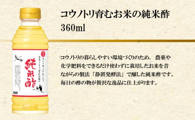 日の出 コウノトリ育むお米の純米酢 360ml 但馬醸造所 日本料理 酢の物 無農薬 酢漬け 酢飯 お寿司 巻き寿司