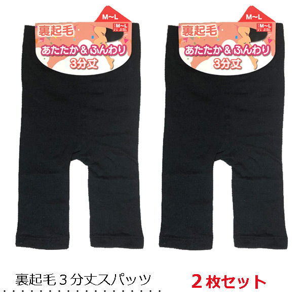 【2枚組】裏起毛3分丈スパッツ レディース 160デニール 冷えとり 見えパン レギンス