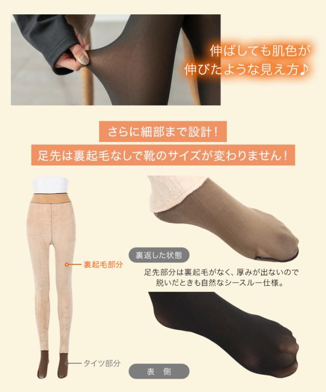 履いてる感じは素肌が透けたような薄手のタイツ感なのに、内側は極暖裏起毛。履き口までしっかりと温かい2枚仕立てで内側が肌色なのでまるでストッキングを履いてるような見え方に。ショートボトムやワンピースを合わせたくても我慢せずに履けるあったかタイツです。【素材・サイズ感】ワンサイズ。足先は裏起毛がないので靴は選ばずパンプスでもスタイルよく履けちゃいます※キャンセル/変更不可※お届けまでの日程について履いてる感じは素肌が透けたような薄手のタイツ感なのに、内側は極暖裏起毛。履き口までしっかりと温かい2枚仕立てで内側が肌色なのでまるでストッキングを履いてるような見え方に。ショートボトムやワンピースを合わせたくても我慢せずに履けるあったかタイツです。【素材・サイズ感】ワンサイズ。足先は裏起毛がないので靴は選ばずパンプスでもスタイルよく履いていただけます。