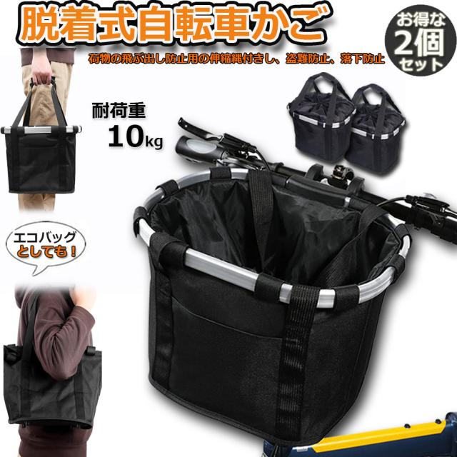 自転車かご 2点セット 脱着式 前かご バスケット 折りたたみ 防水 取り付け 簡単 耐荷重 10KG 折りたたみ式カゴ マウンテンバイク クロスバイク 折り畳み自転車 大容量 脱着簡単 山地車 折り畳み車 通勤車等
