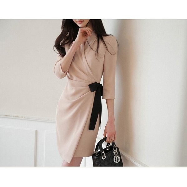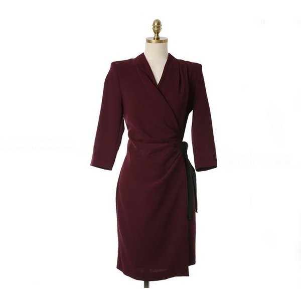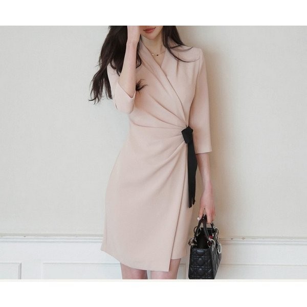 ワンピース タイト ラップデザイン ミニ ミディ丈 膝上丈 Vネック 七分袖 大きいサイズあり 大人っぽい きちんと感