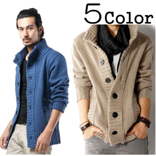 メンズ カーディガン ニットカーディガン 長袖 厚手 アウター 上着 襟付き ポケット付き 前開き ボタン リブ加工 秋 冬 カジュアル おしゃれ き