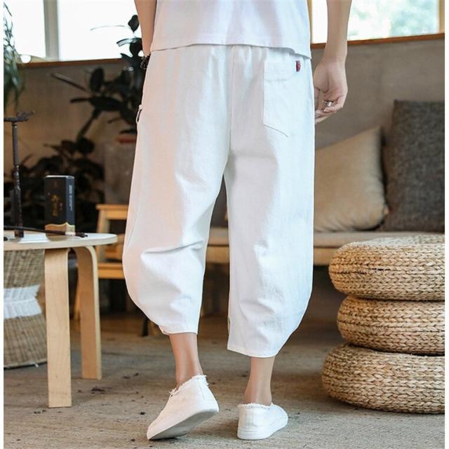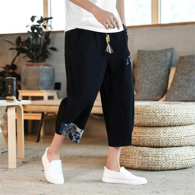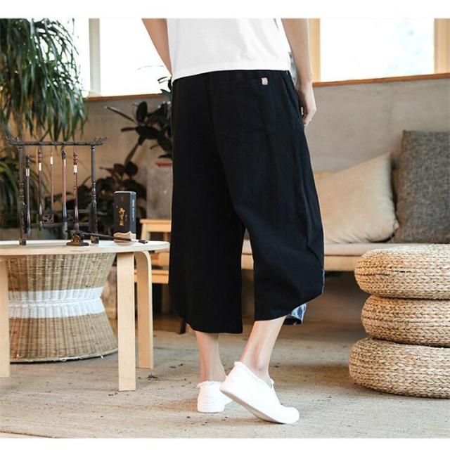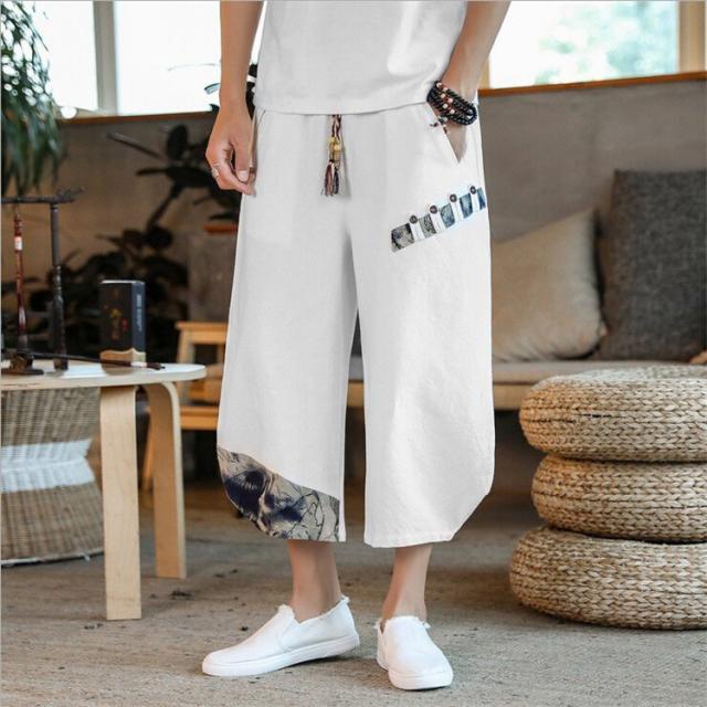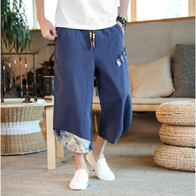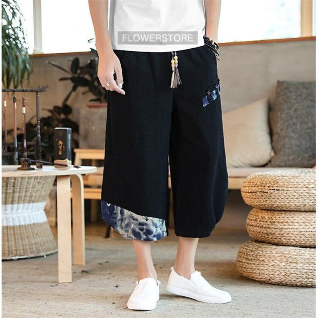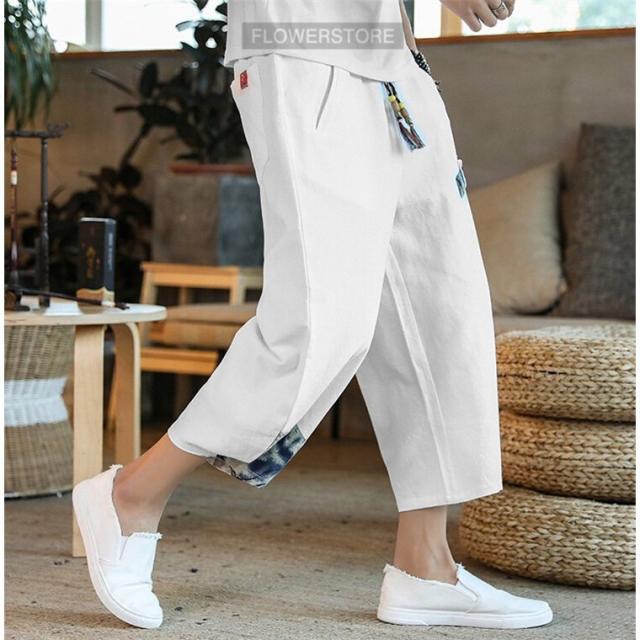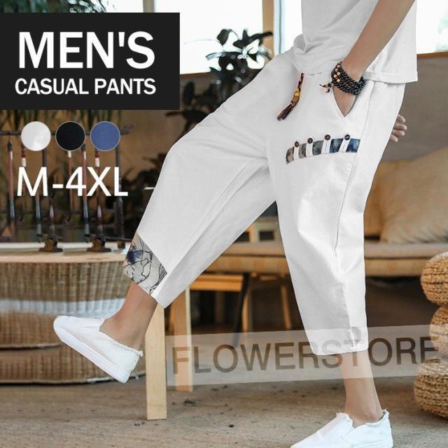 リネンパンツ メンズ 夏 カジュアルパンツ ロング丈 民族風パンツ 薄手 サルエルパンツ エスニック柄 メンズ ボトムス ワイドパンツ
