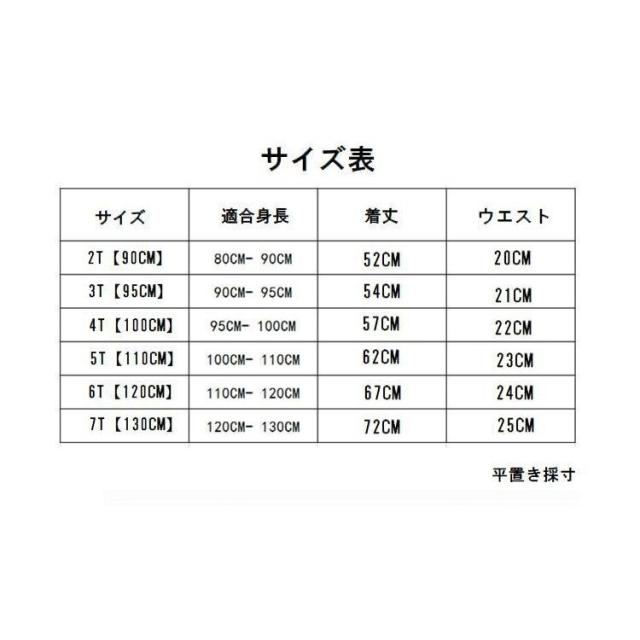 | サイズ | 2T【90cm】 3T【95cm】 4T【100cm】 5T【110cm】 6T【120cm】 7T【130cm】 |