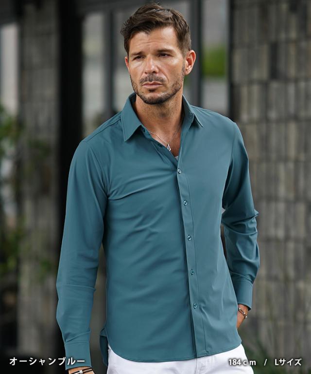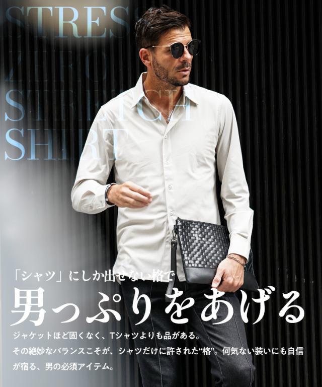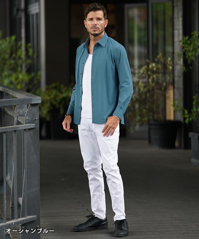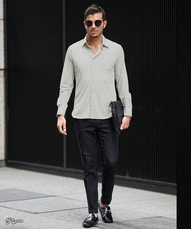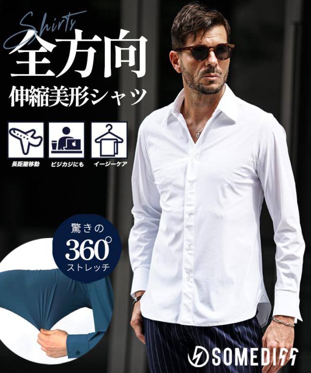 「ガチで全方向に伸びる!」 シャツ メンズ 長袖 ストレッチ 白シャツ メンズ カジュアルシャツ ワイシャツ Yシャツ ドレスシャツ レギュラーカラー おしゃれ 30代 ビジネス フォーマル 無地 細身 タイト スリム ちょいワル お兄系 秋服 秋 秋新作 新作 joker ジョーカー