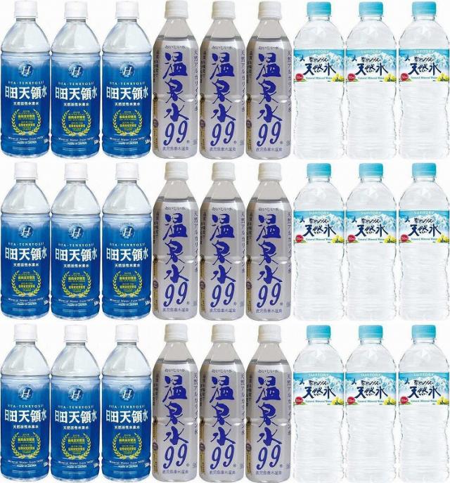 水分補給飲料27本セット(温泉水99(鹿児島県) 南アルプス天然水 日田天領水) 500ml×27本