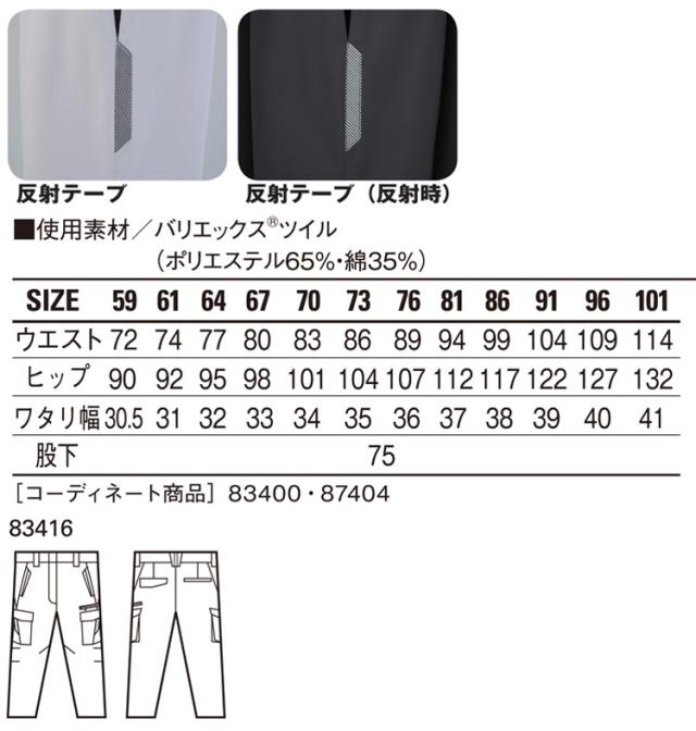 作業服 作業着 秋冬 自重堂 Jichodo 抗ウイルス加工 レディースカーゴパンツ 83416