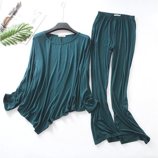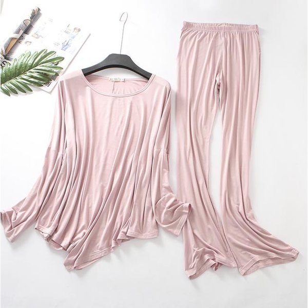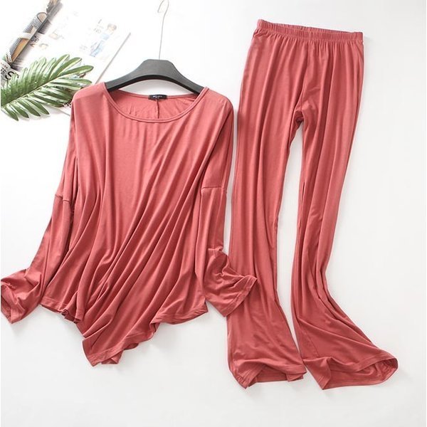 レディース 2点セット ルームウェア ビッグTシャツ ロングパンツ 上下セット ゆったり 無地 長袖 セットアップ 部屋着 寝間着