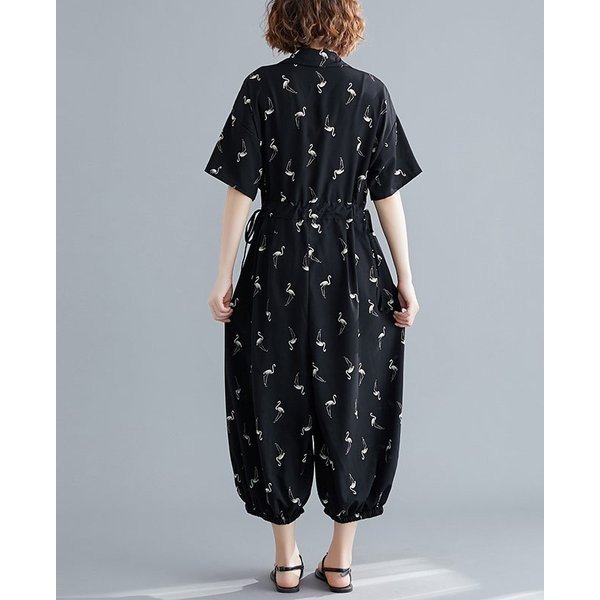 つなぎ レディース ゆったり オールインワン 半袖 クロップドパンツ コンビネゾン 女性用 オーバーオール コンビネーション 薄