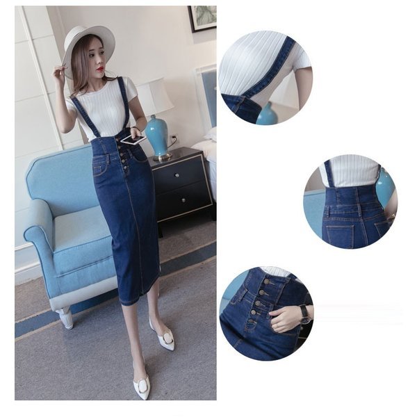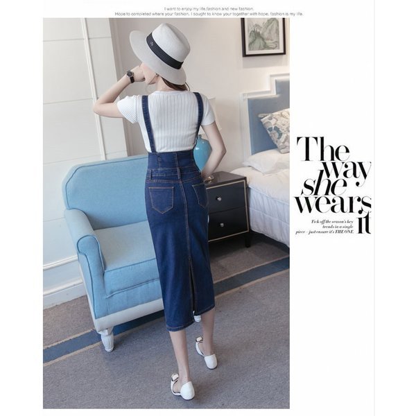 レディース デニムサロペット 大きいサイズ ロング 新作 ジーンズ スカート タイト エレガント きれいめ 通勤 オフィス スリ