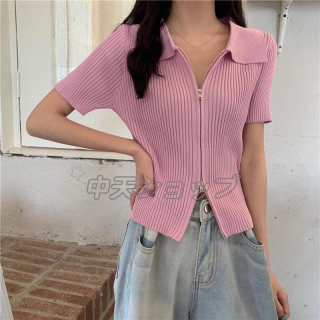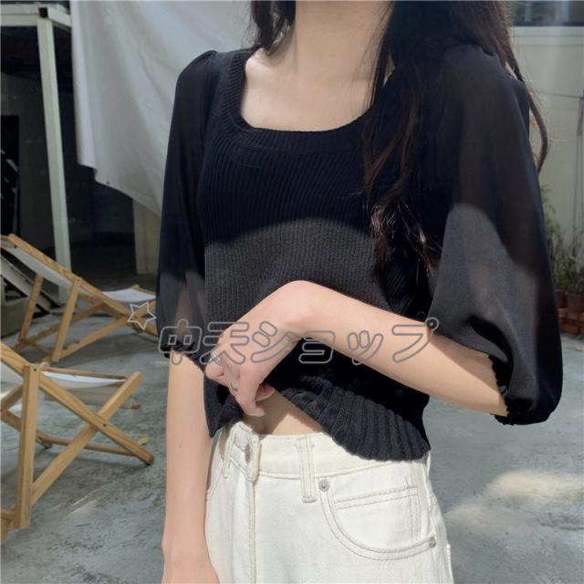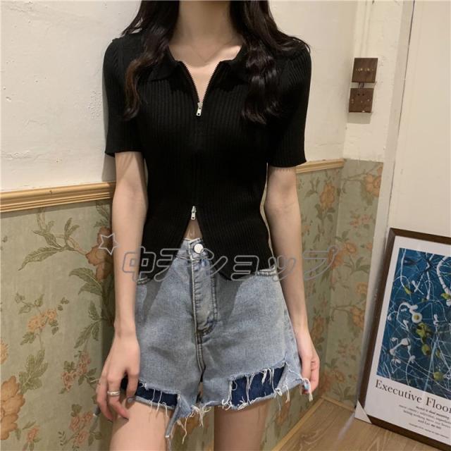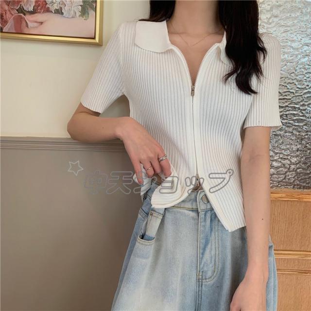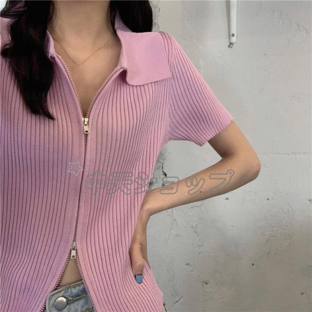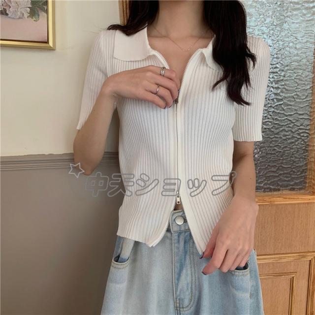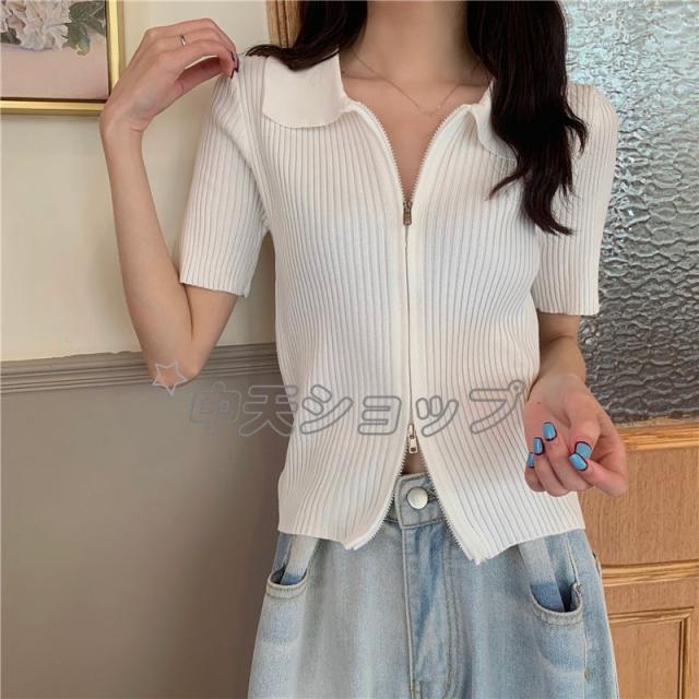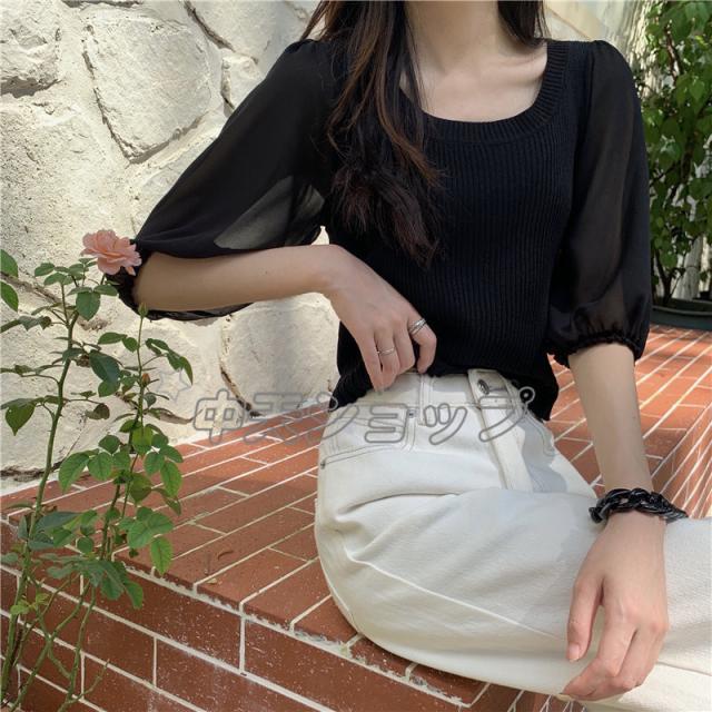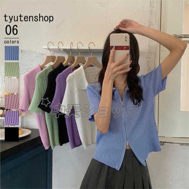 夏ニットブラウスレディースブラウス人気着痩せセーターシャツニットブラウス半袖ブラウストップス カジュアル通学通勤人気着痩せ春夏新作30代40代全6色