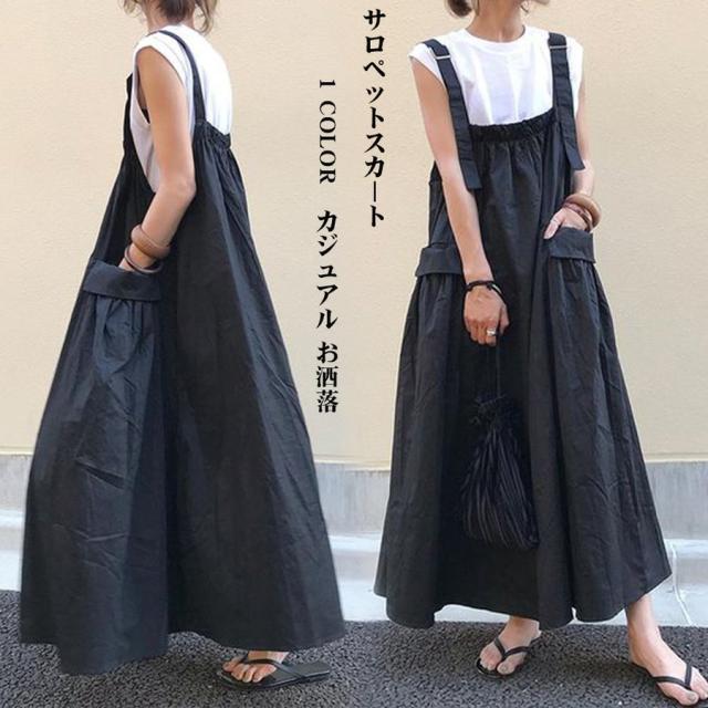 サロペットスカート キャミソールワンピース オーバーオール ゆったり マキシワンピース レディース 着回し ポケット付き カジュアル 通勤 大人 春夏コーデ