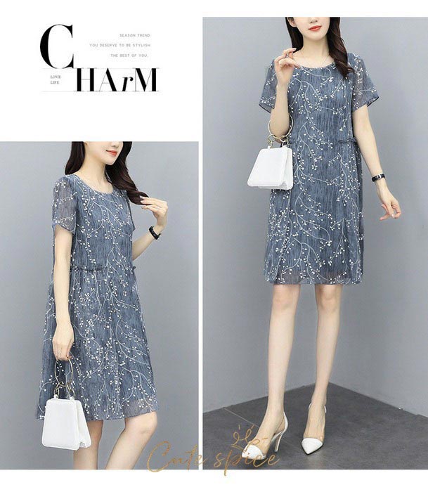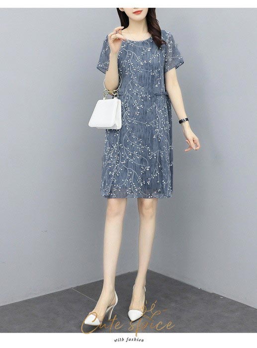 ワンピース レディース 40代 きれいめ 膝丈ワンピース 春夏新作 半袖ワンピース シフォン Aラインスカート ゆったり オシャレ韓国風 上品 通勤 OL 30代 50代
