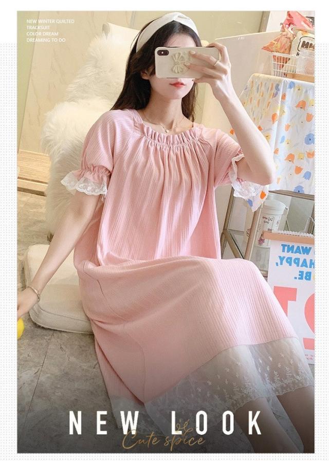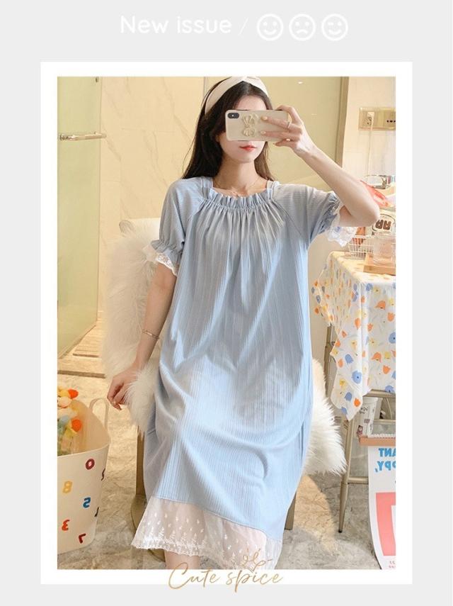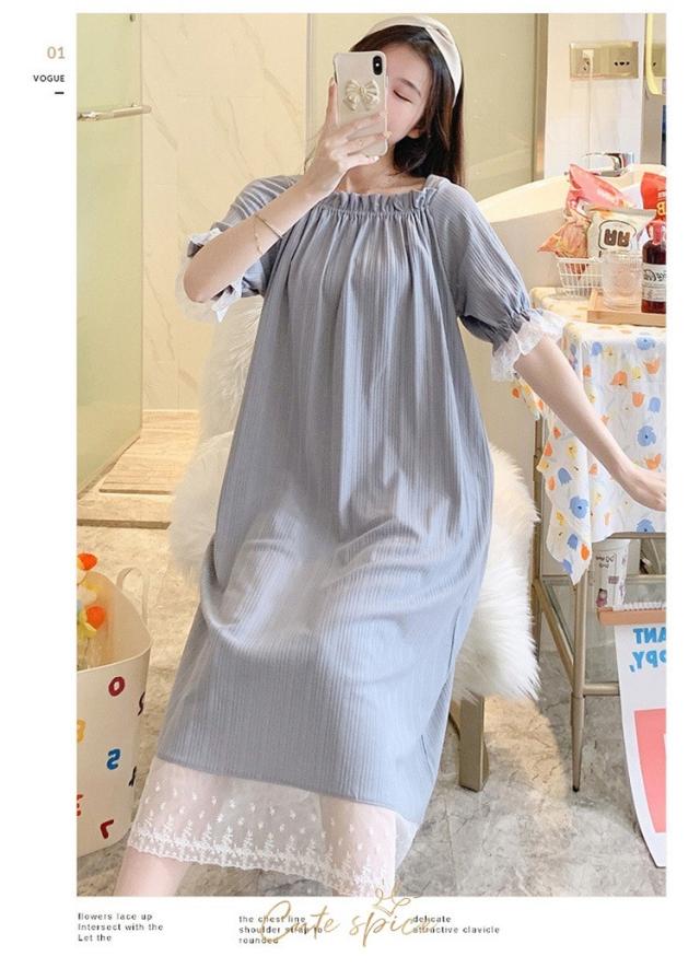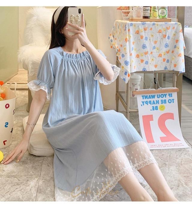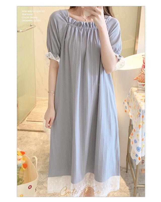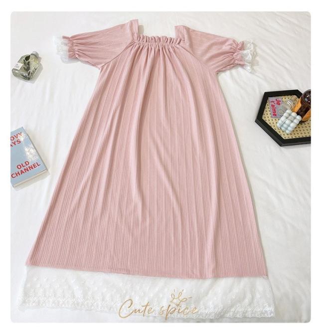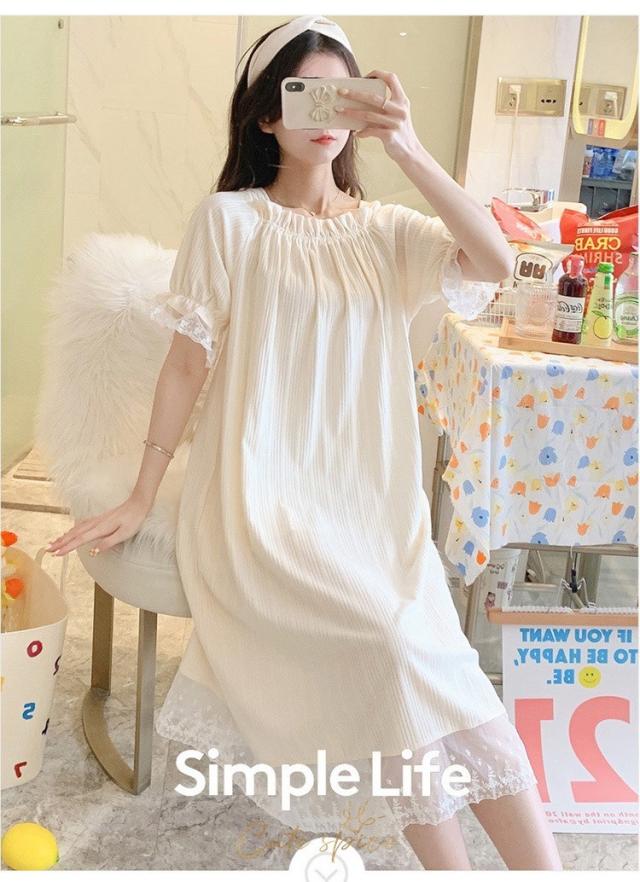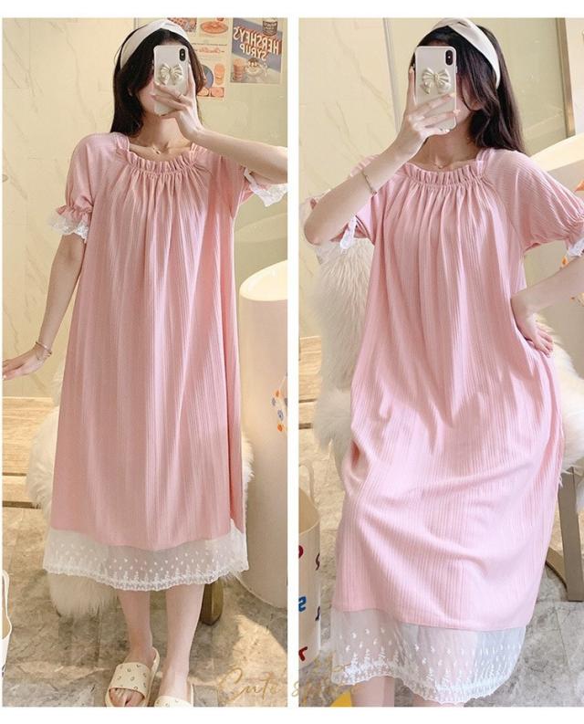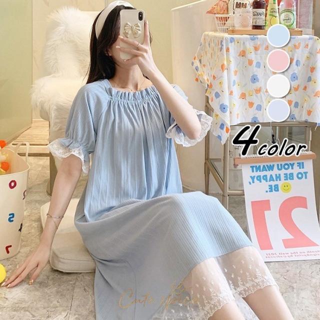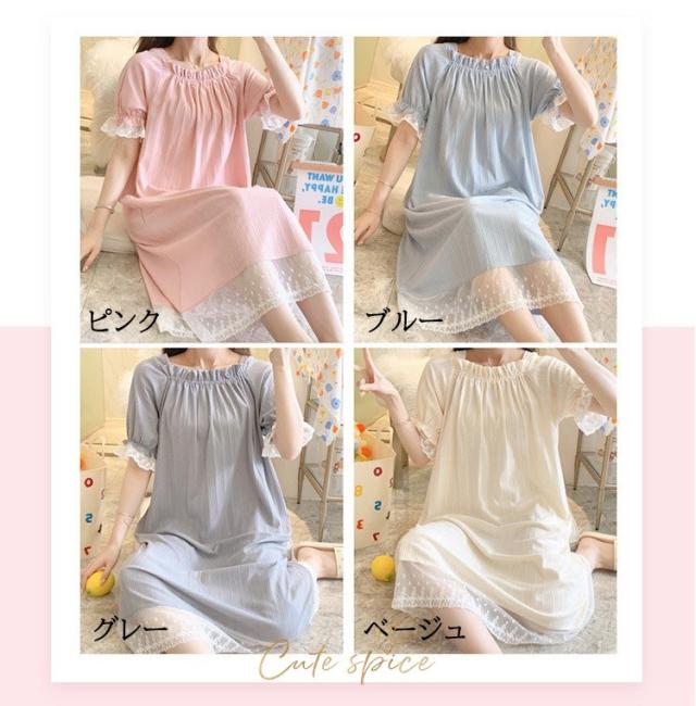 ネグリジェ 春夏 レディース 半袖ワンピース 無地レース 大人可愛いパジャマ お姫 ロング丈ネグリジェ ナイトロープ 部屋着 オシャレルームウェア ゆったり