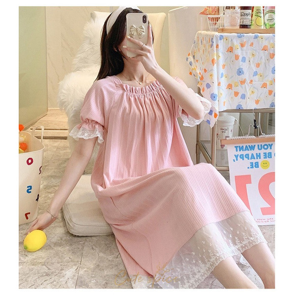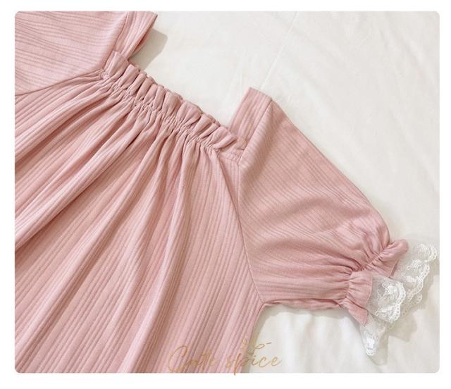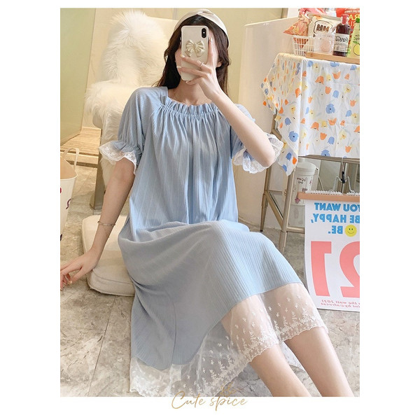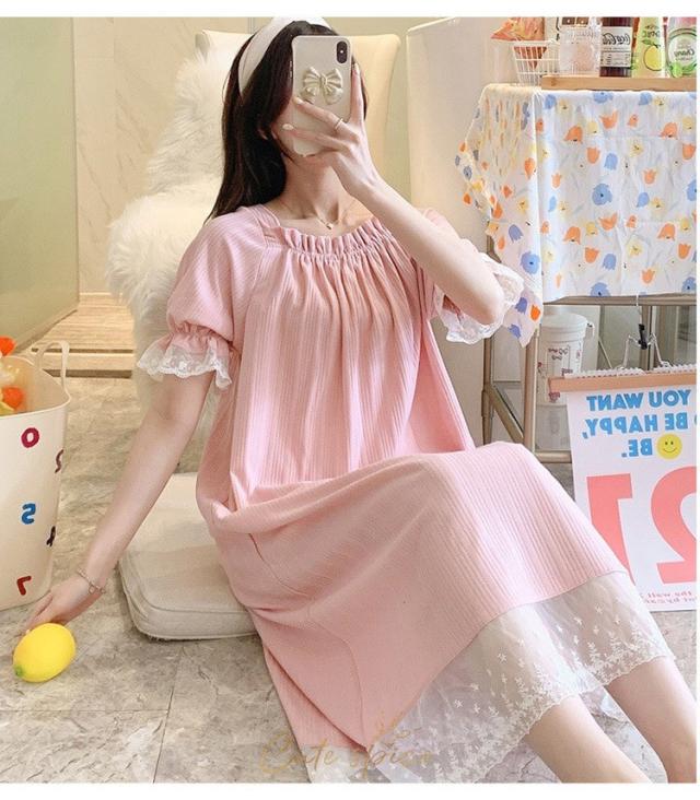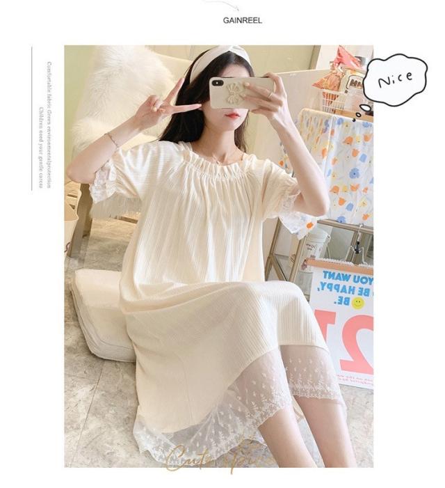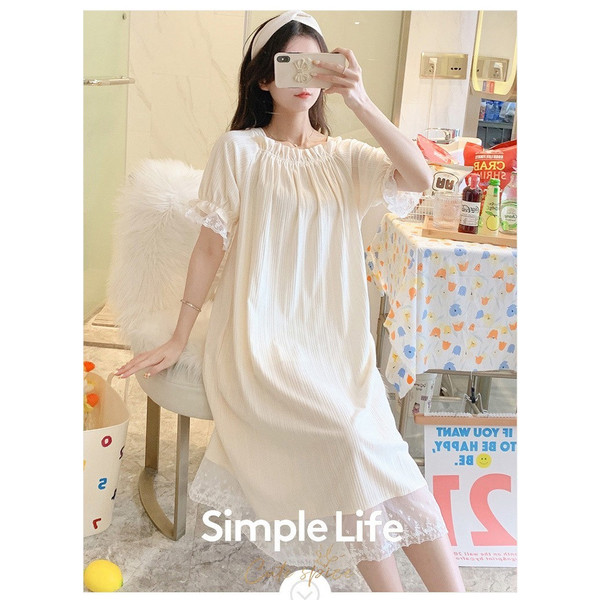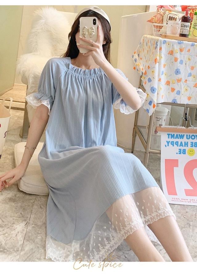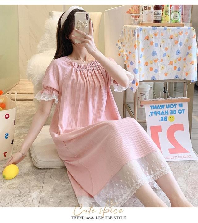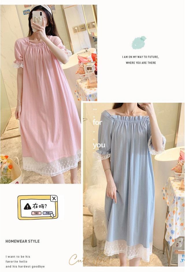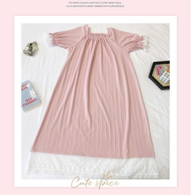 ネグリジェ 春夏 レディース 半袖ワンピース 無地レース 大人可愛いパジャマ お姫 ロング丈ネグリジェ ナイトロープ 部屋着 オシャレルームウェア ゆったり