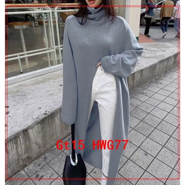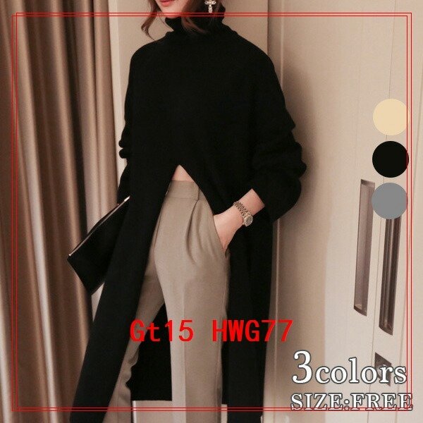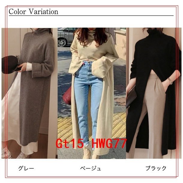 重ね着スリットロングニットソーロングニットセーター長袖タートルネックワンピースニットワンピトップスレディース()