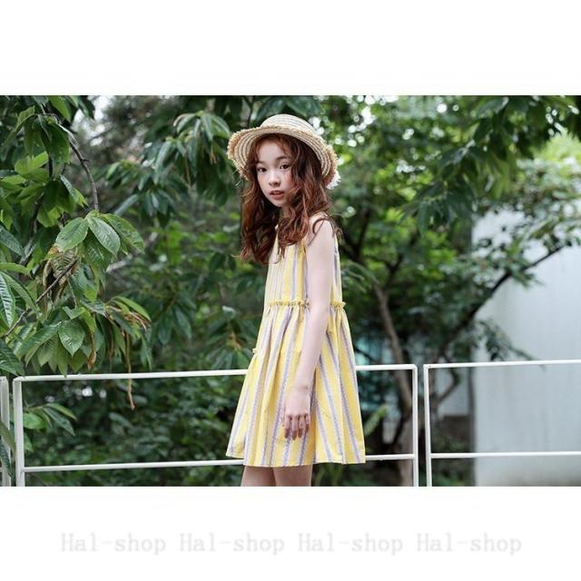 ワンピース キッズ 子供服 子供ドレス 韓国子供服 女の子 ジュニア 夏 ノースリーブ 膝丈 ストライプ カジュアル おしゃれ 可愛い 通学着 通園着