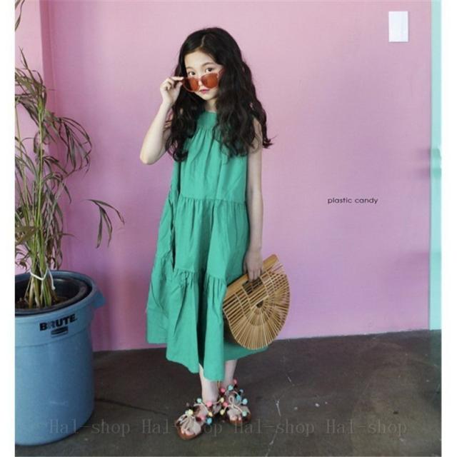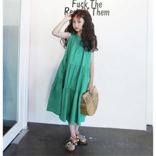 ワンピース 春夏 子供服 女の子 ノースリーブ ロングワンピース チュニック 子供ドレス ジュニア おしゃれ 可愛い 涼しい ビーチ 新品 160cm