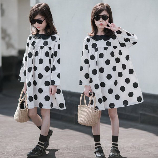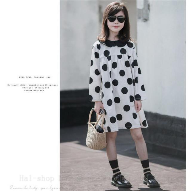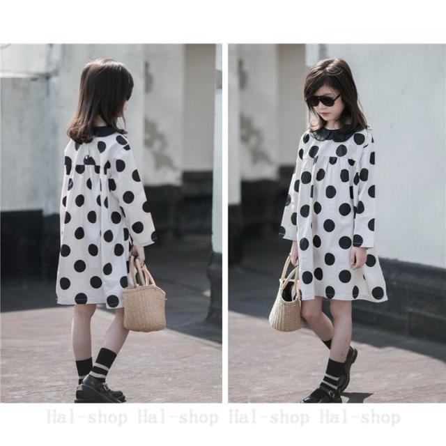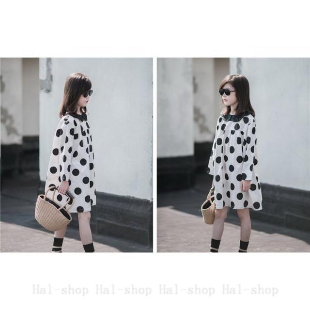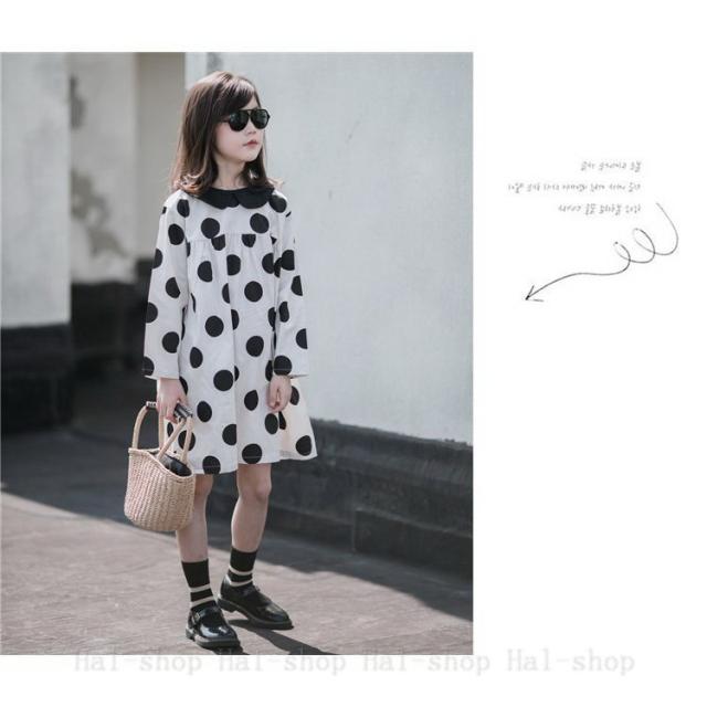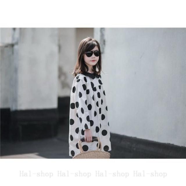 キッズ 長袖 ワンピース 子供服 春秋 キッズワンピース 長袖ワンピース 折り襟 ドット柄 子供ドレス お姫様 ジュニア おしゃれ 可愛い カジュアル 新品