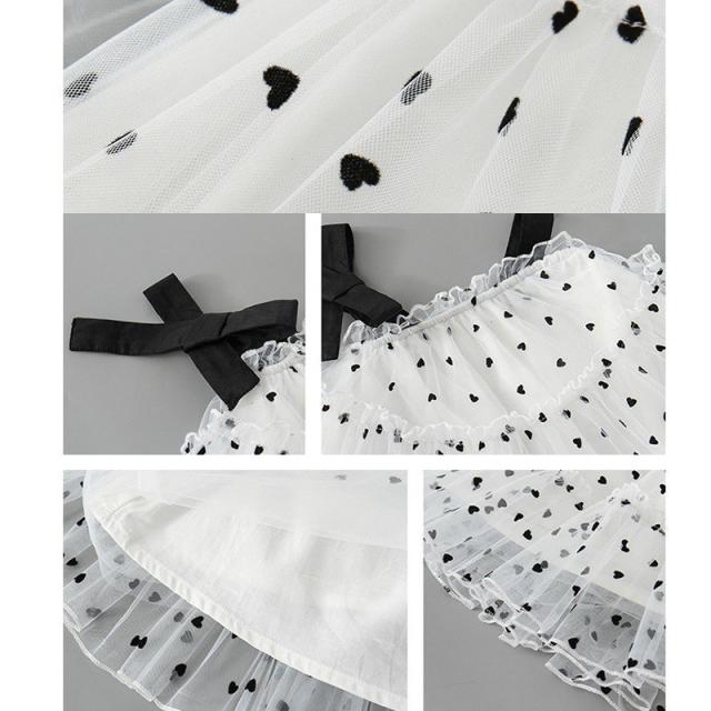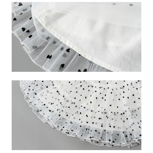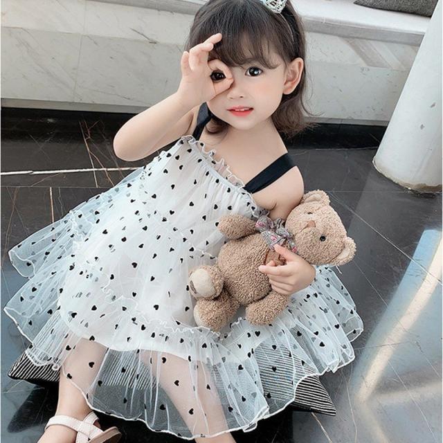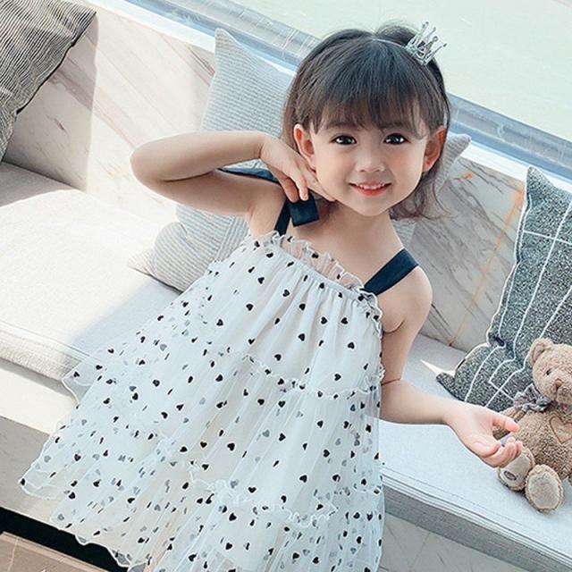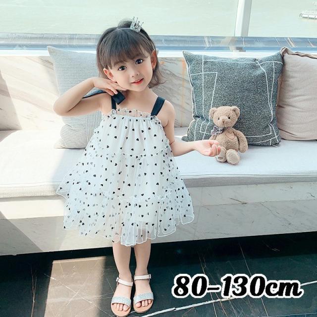 キャミソールワンピース 子供服 キッズ ベビー 女の子 カジュアルドレス ノースリーブ 膝丈 チュールレース メッシュ ハート ティアードフリル ギャ