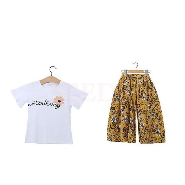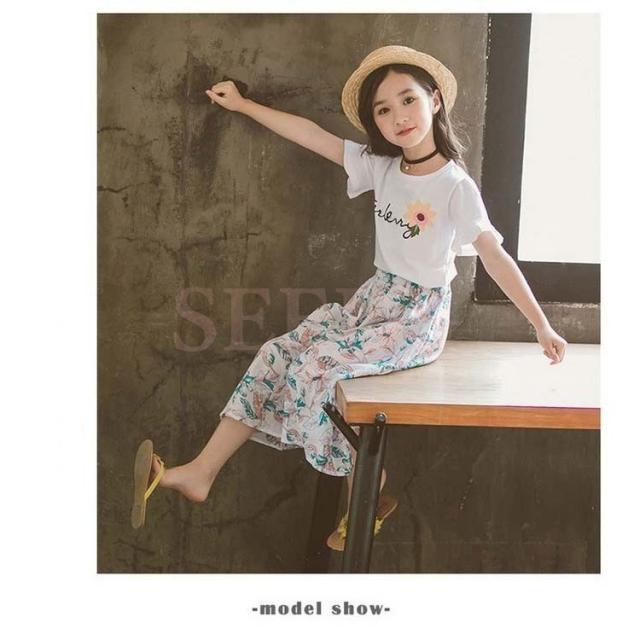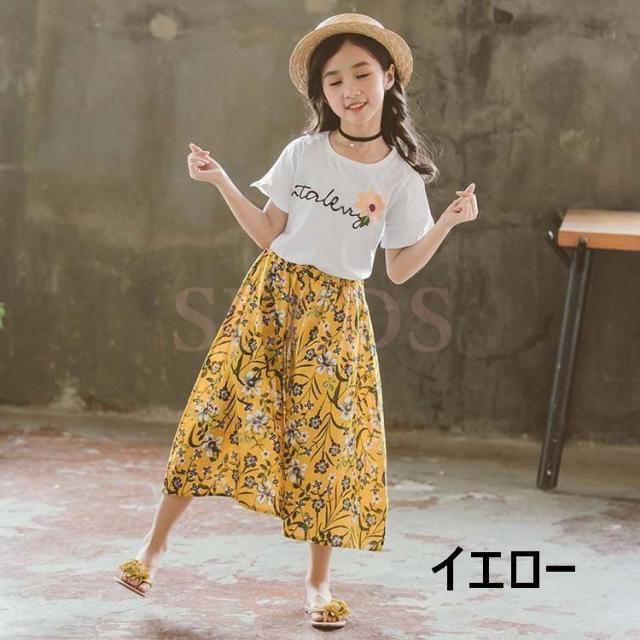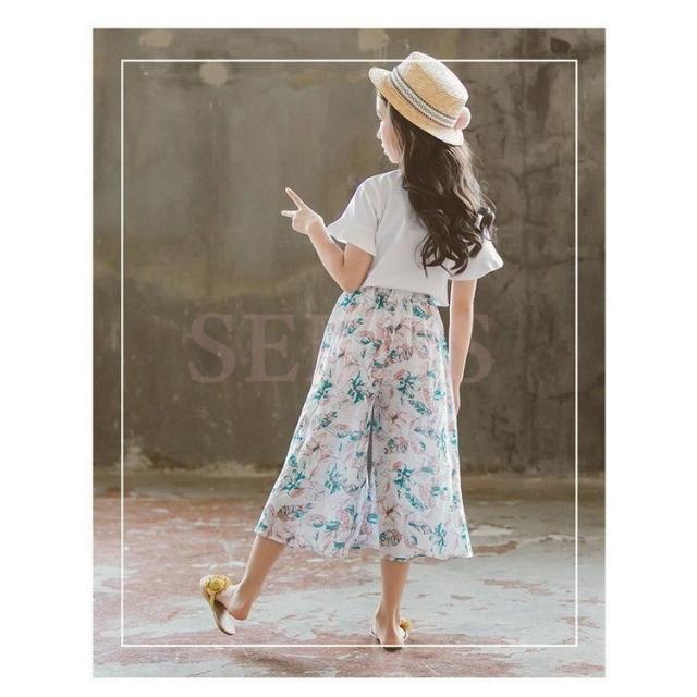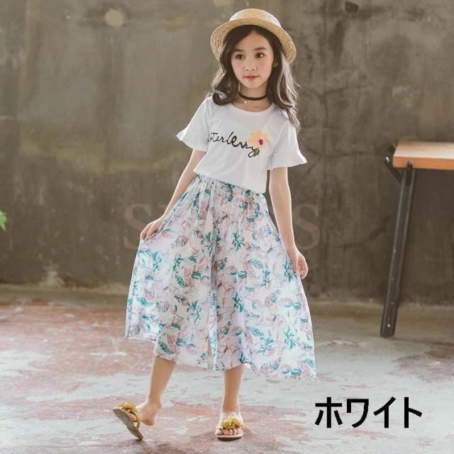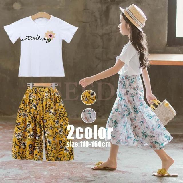 子供服 セットアップ 夏 韓国子供服 女の子 キッズ ジュニア 上下セット 半袖 Tシャツ パンツ 2点セット 花柄 可愛い 通学着 通園 110 120 130 140 150 160cm