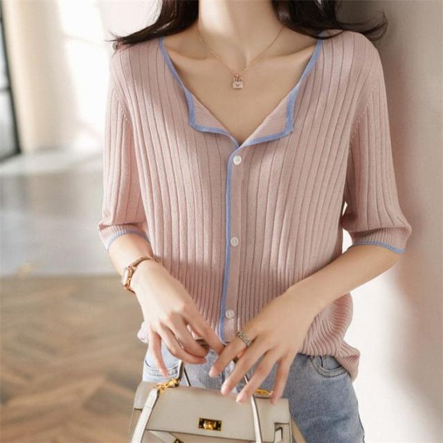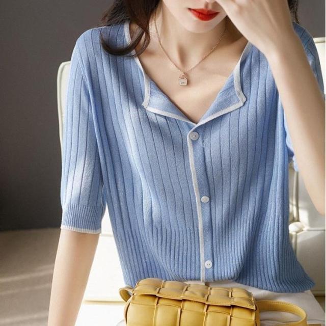 ニットTシャツ トップス レディース きれいめ 40代 春夏 半袖トップス 白インナー オシャレ ブラウス Vネック tシャツ 韓国風 通勤 着痩せ