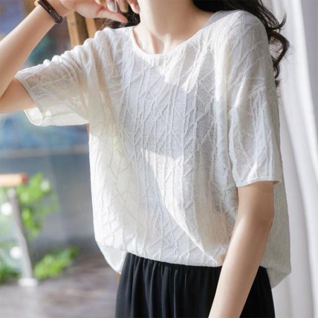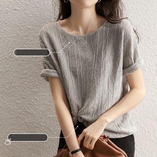 ニットTシャツ トップス レディース きれいめ 40代 春夏 半袖トップス 白インナー オシャレ ブラウス 丸首 tシャツ 韓国風 通勤 着痩せ